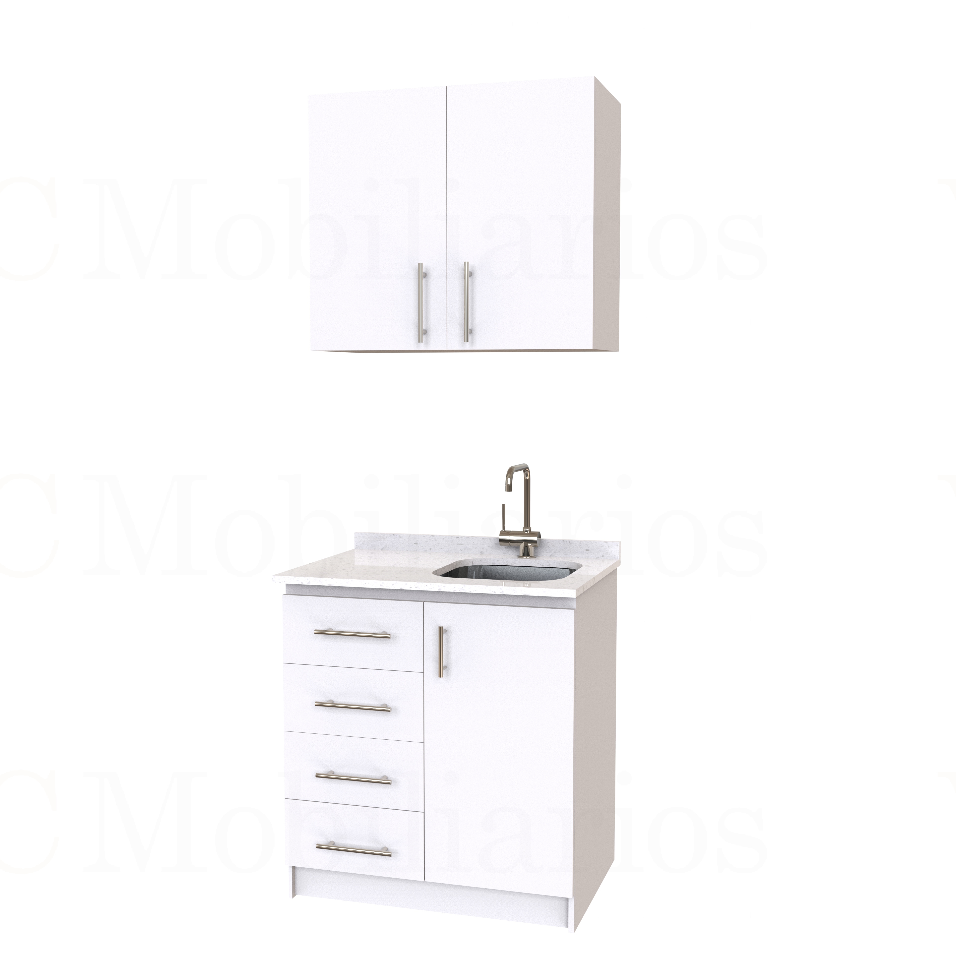- Kit de mueble lavaplatos + Mueble Mural de 80 cm / KT1-834 / cuarzo / blanco