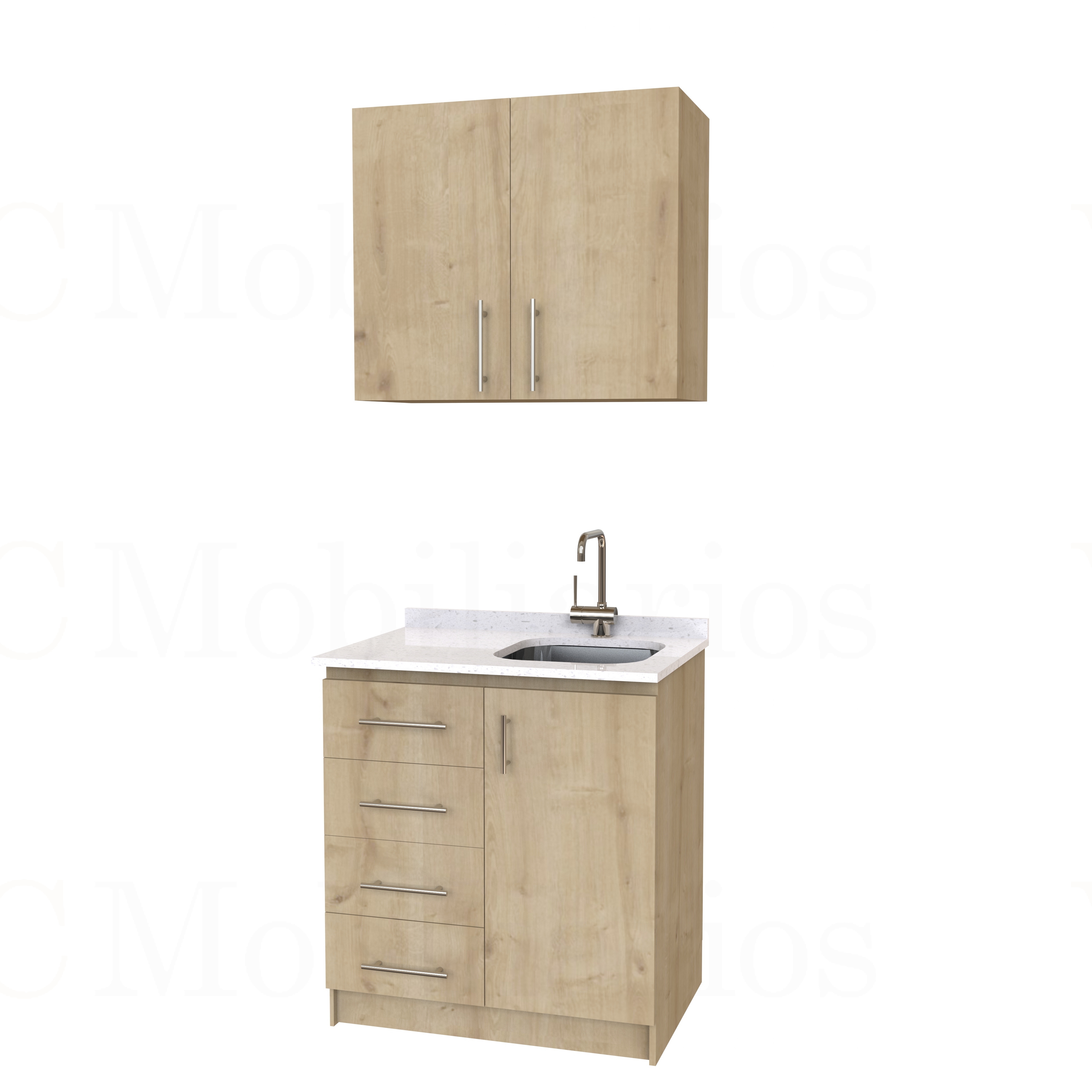 - Kit de mueble lavaplatos + Mueble Mural de 80 cm / KT1-834 / cuarzo / Rustico