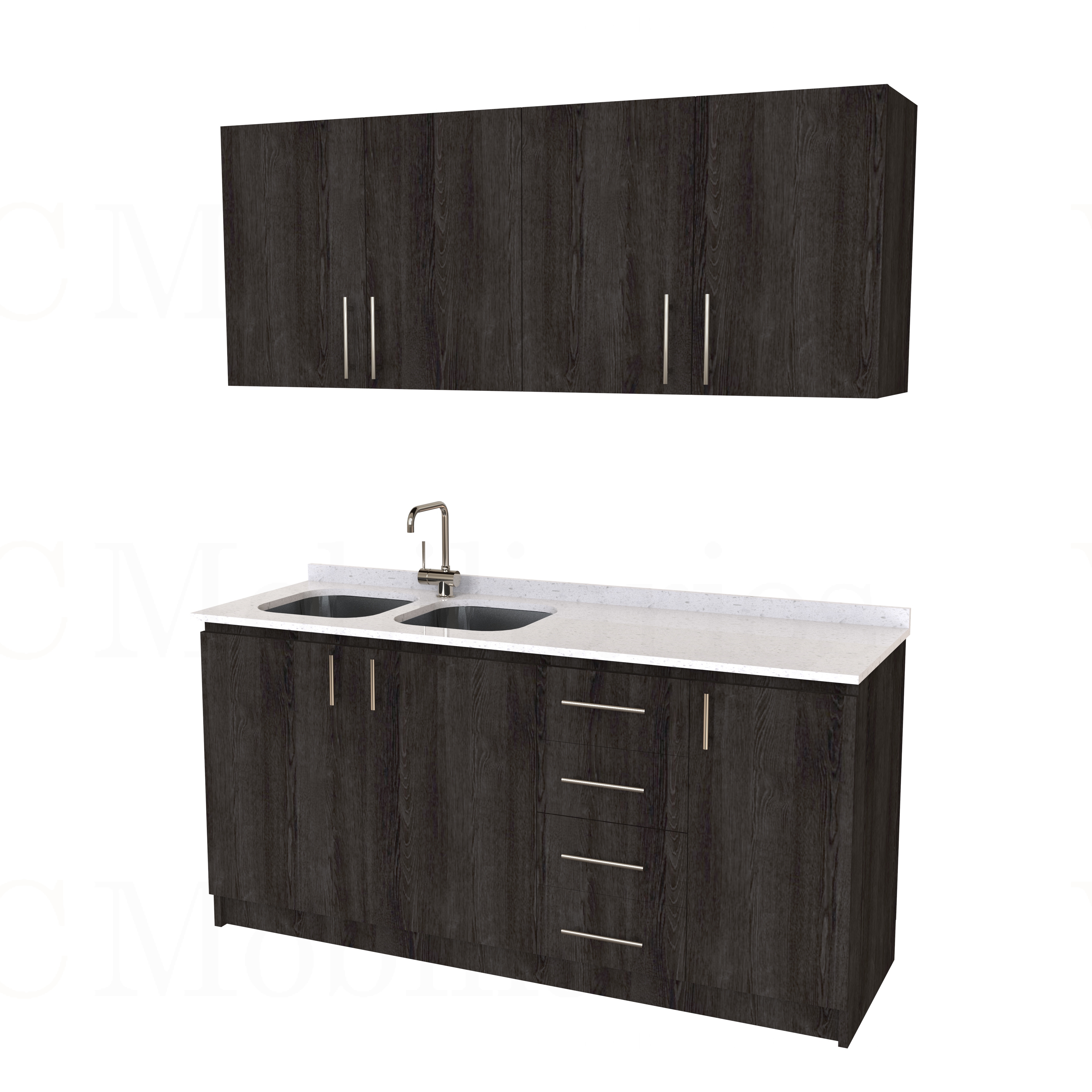 Kit de mueble lavaplatos doble + Mueble Mural de 170 cm / KT1-1734 / cuarzo / expresso