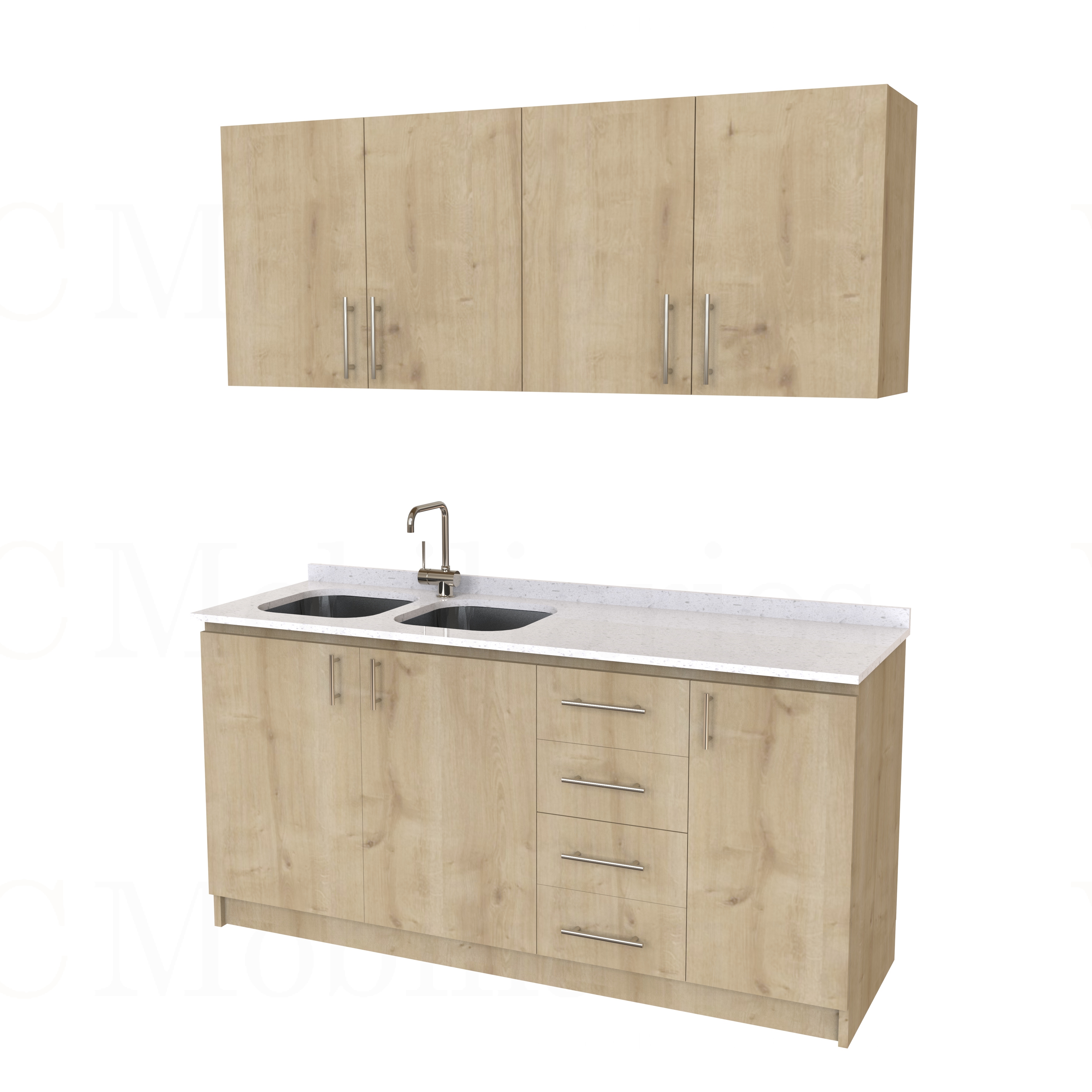Kit de mueble lavaplatos doble + Mueble Mural de 170 cm / KT1-1734 / cuarzo / rustico