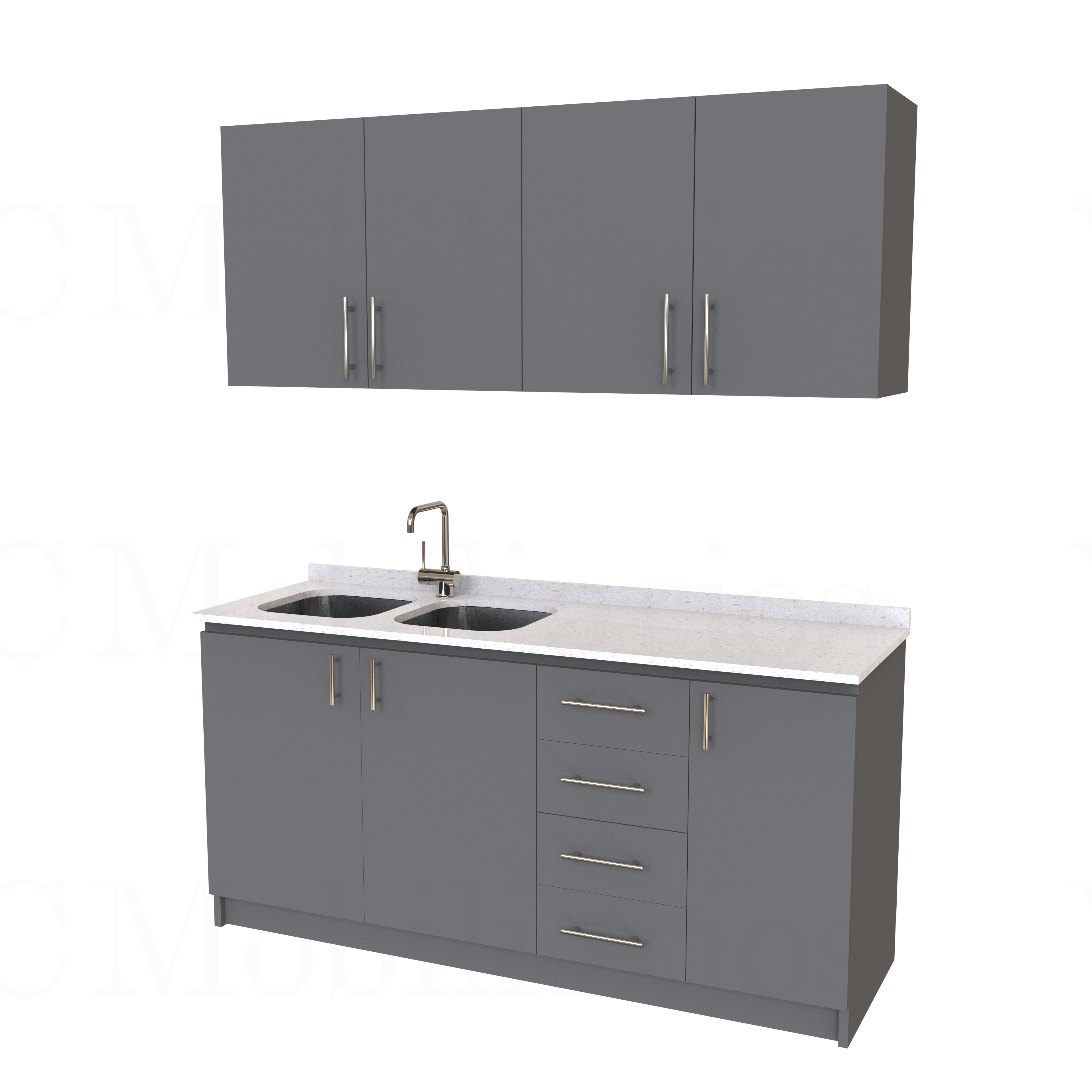 - Kit de mueble lavaplatos doble + Mueble Mural de 180 cm / KT1-1834 / cuarzo / carbon
