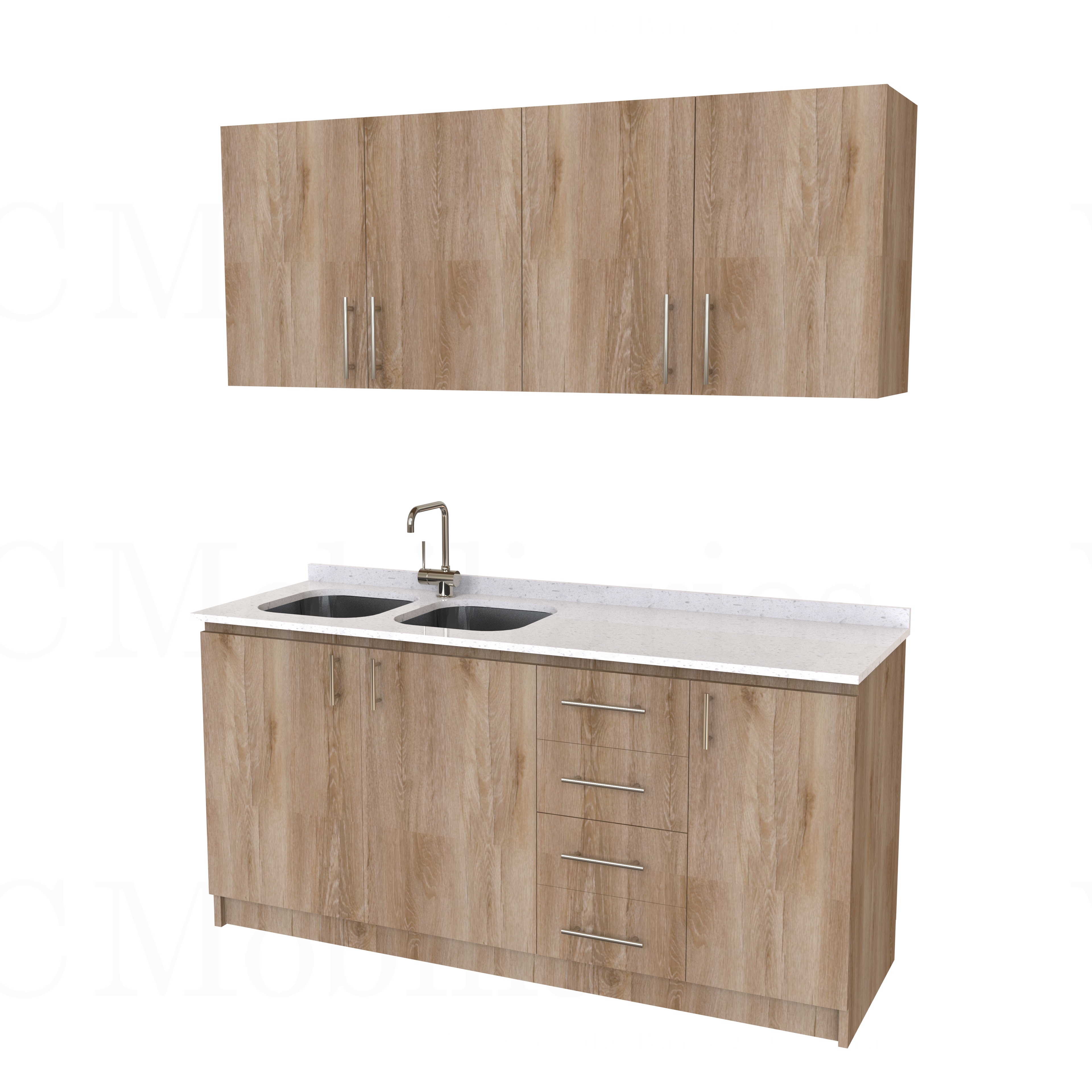 - Kit de mueble lavaplatos doble + Mueble Mural de 200 cm / KT1-2034 / cuarzo / cava