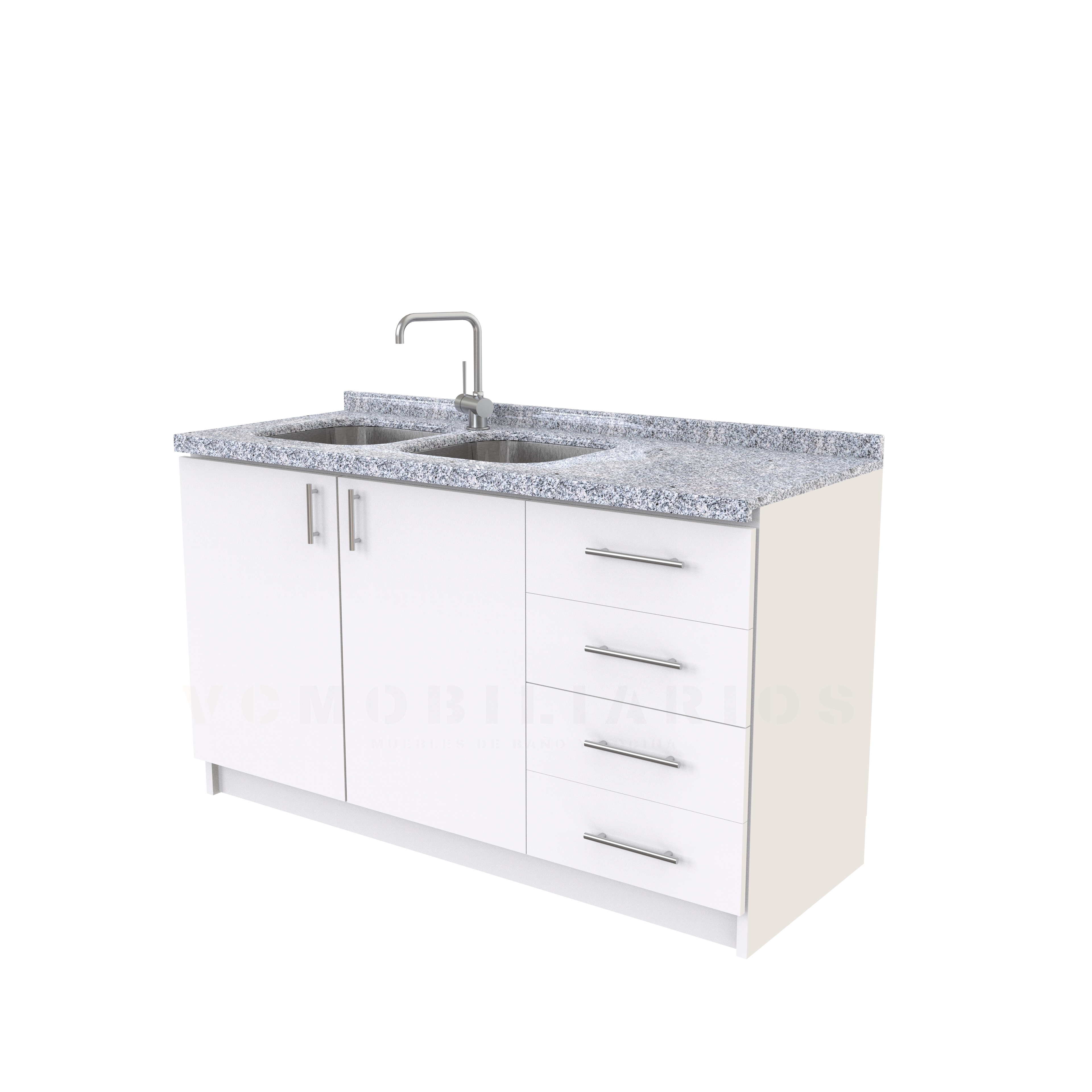 Mueble lavaplato Doble de 140 cm M1-1473-DI / Granito / Blanco - Blanco
