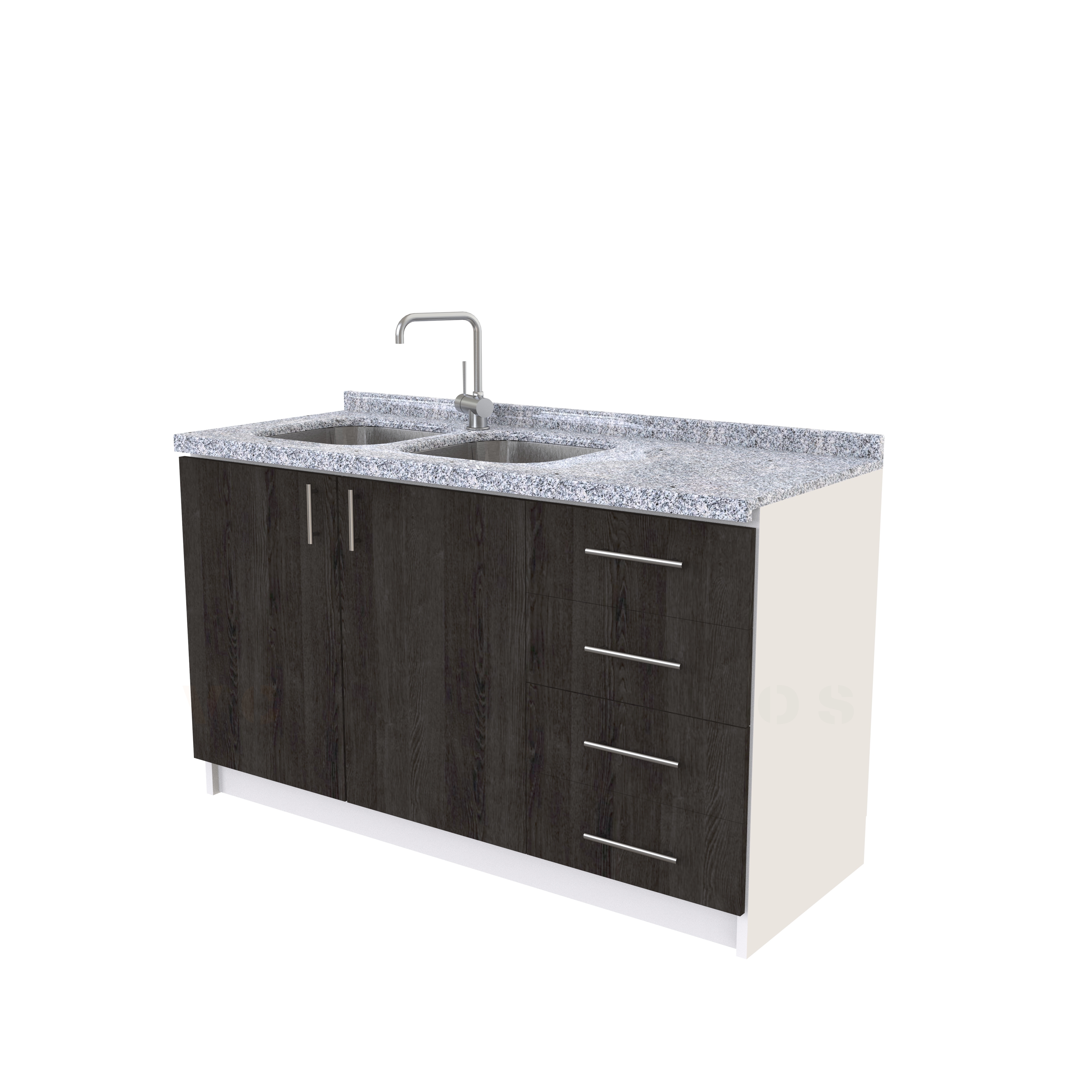 Mueble lavaplato Doble de 140 cm M1-1473-DI / Granito / Blanco - Espresso