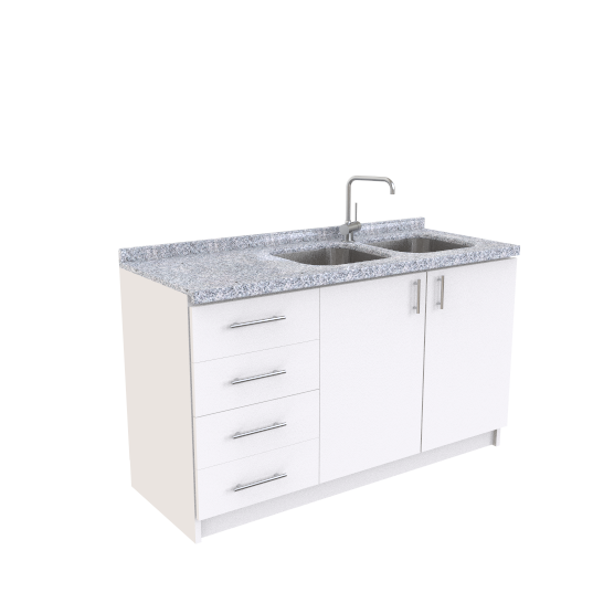 Mueble lavaplato Doble de 150 cm M1-1573-D / Granito / izquierdo / Blanco