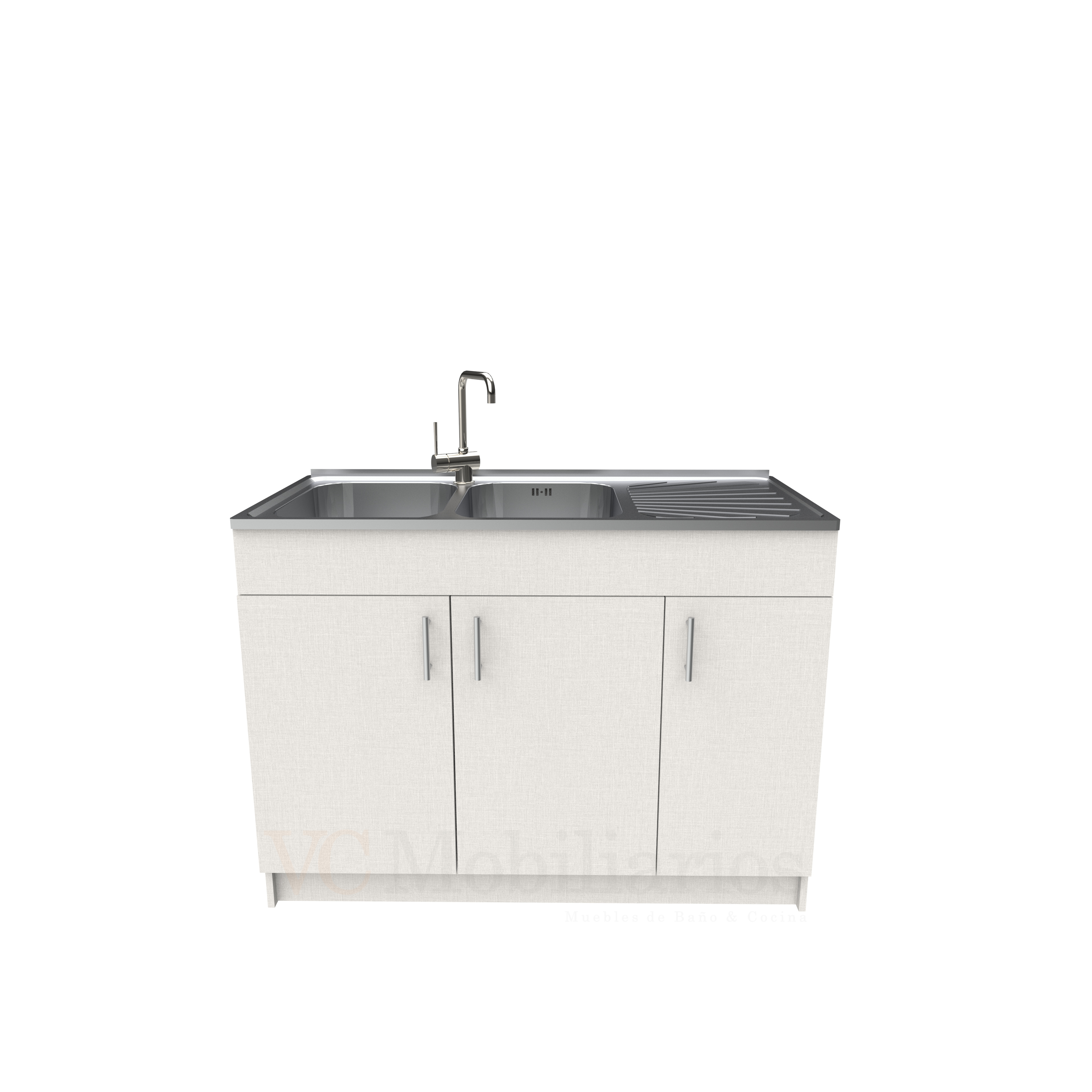 Este mueble lavaplatos cuenta con una cubierta de acero inoxidable , lo que le brinda durabilidad y resistencia. Su diseño elegante y moderno se adapta a cualquier estilo de cocina, aportando un toque de sofisticación.