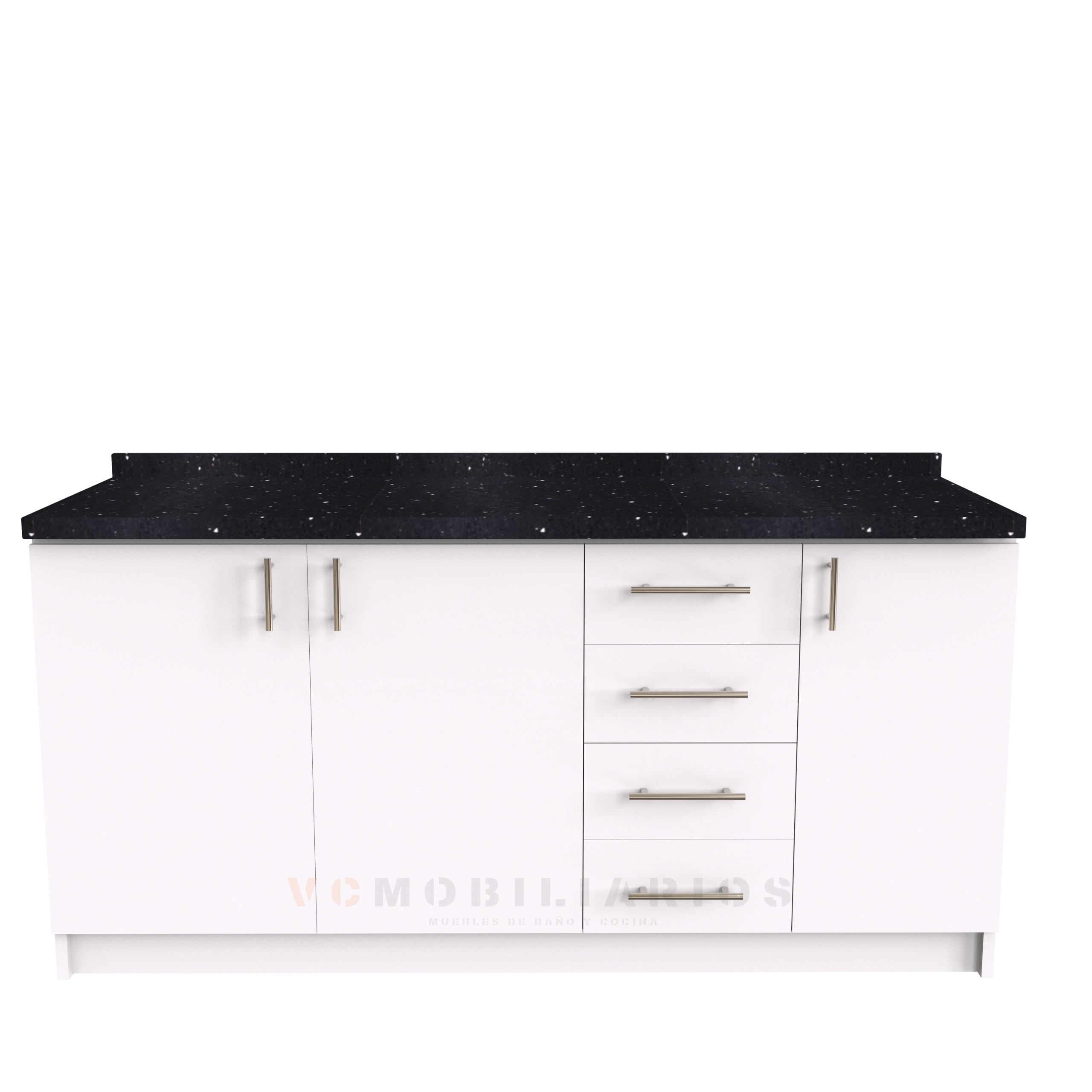 - Mueble tipo mesón M1-1600-MTM de 160 cm / Blanco / Cuarzo Negro galaxys