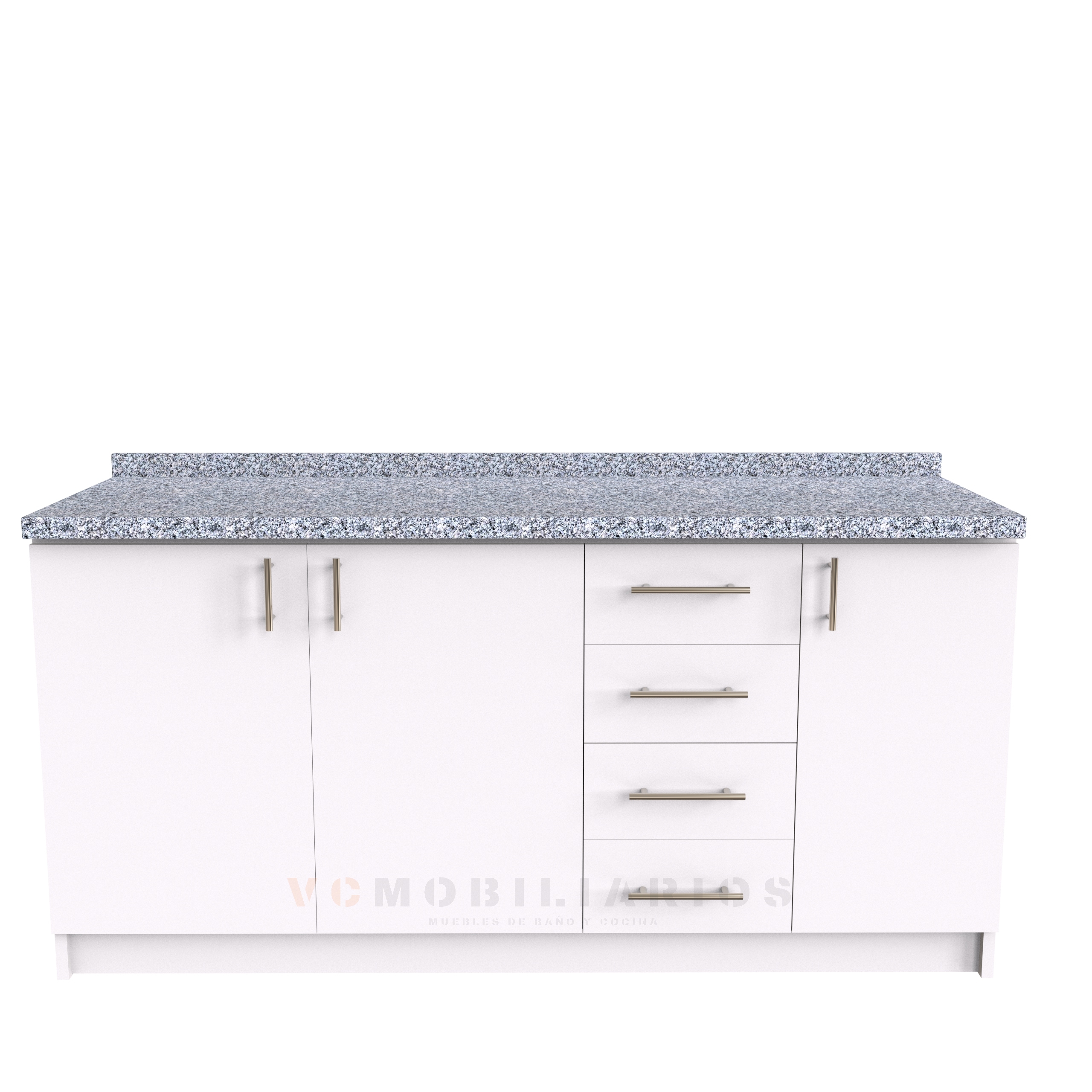 - Mueble tipo mesón M1-1800-MTM de 180 cm / Blanco / Granito gris mara