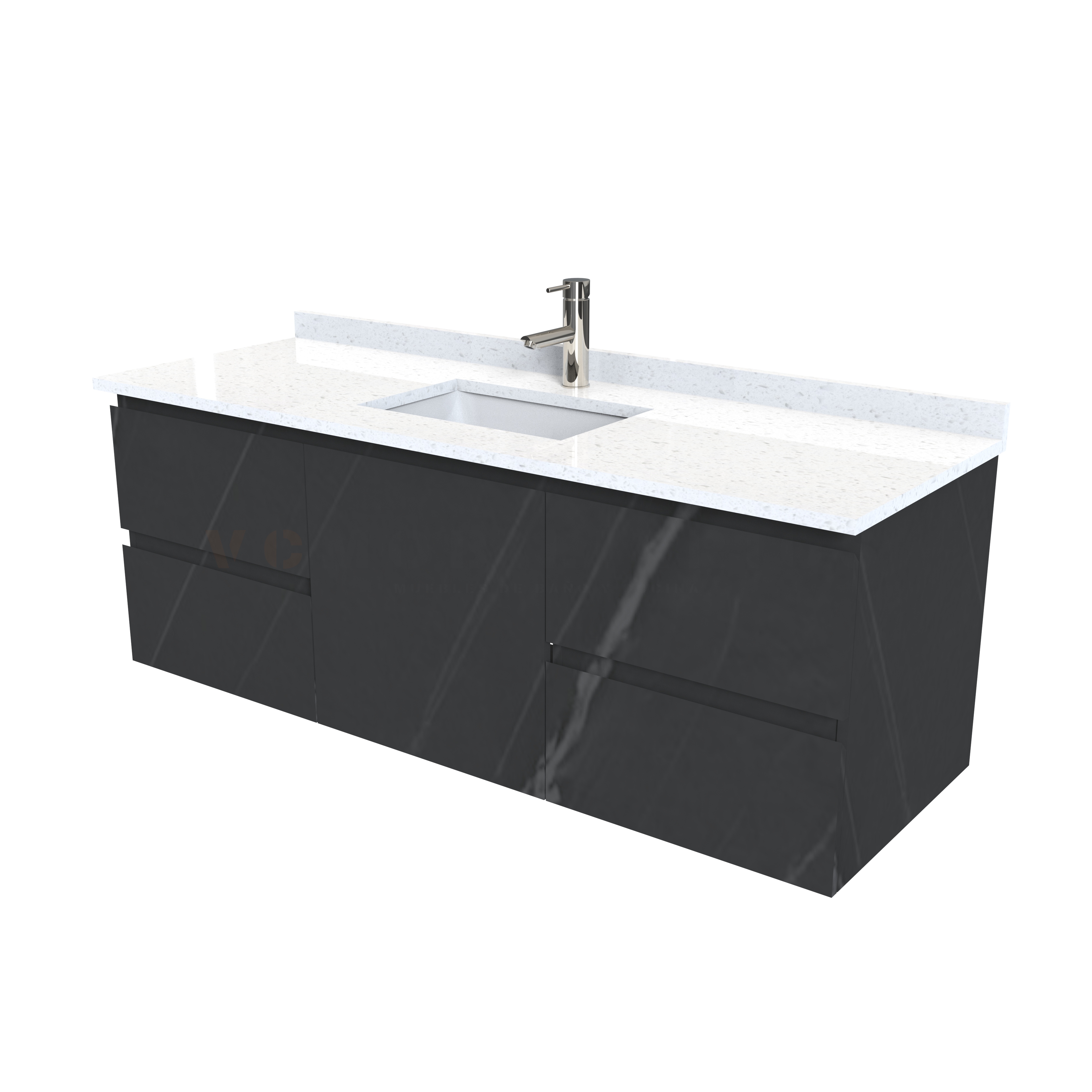 Mueble vanitorio aereo de 140 cm con cubierta de cuarzo / M2-1438-A / Vizcaya